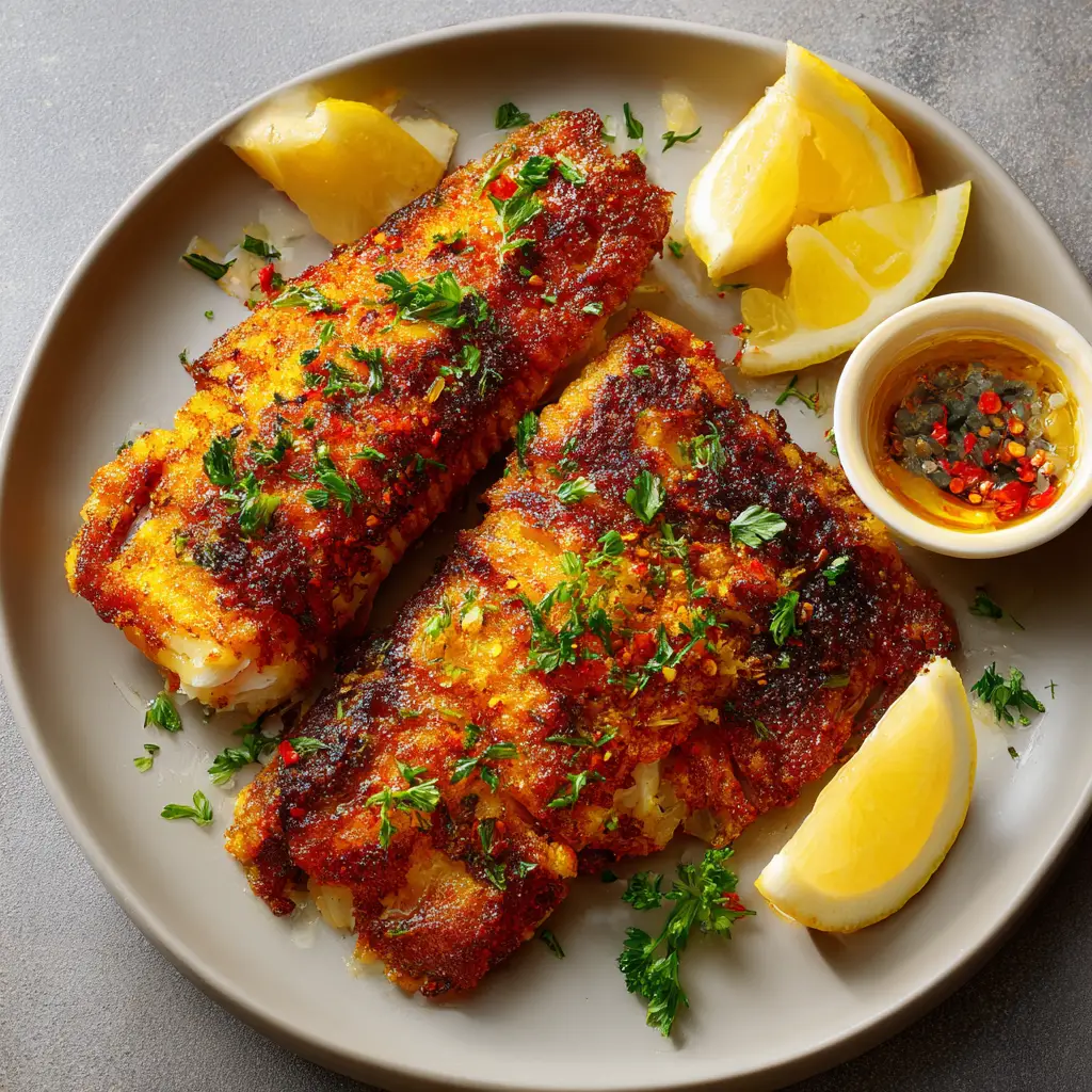 6. Optional garnish with fresh parsley and serve with lemon wedges. The fresh herbs add color and an aromatic touch that complements the fish perfectly.