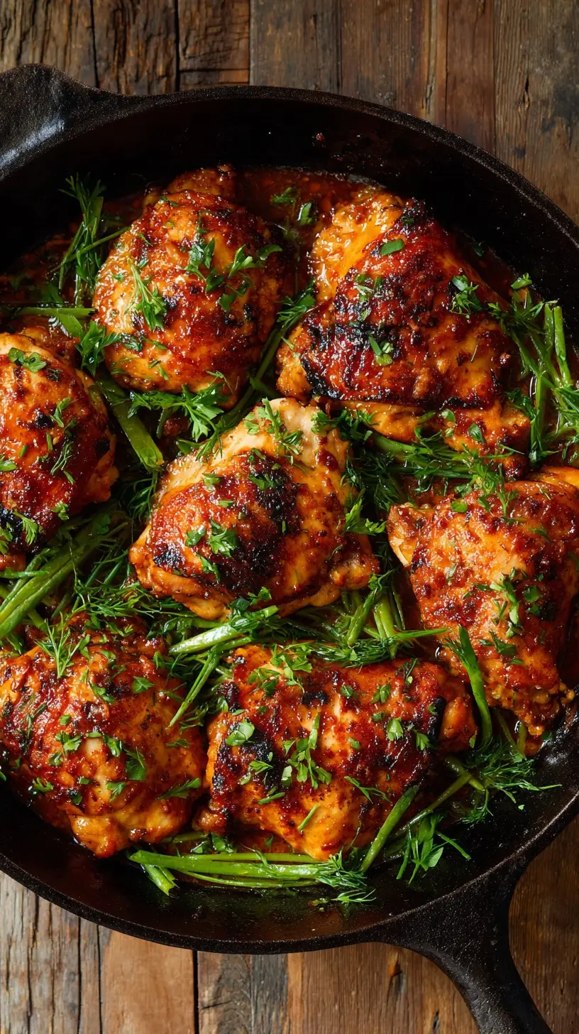 - Serve: Plate the chicken and vegetables, spoon sauce over the top, and garnish with the remaining herbs.