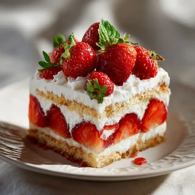 These ingredients create a moist, flavorful cake with a naturally sweet strawberry taste and a creamy, smooth topping.